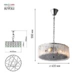 Rivoli Marthilde (арт. 4088-306) — дизайнерские подвесные люстры от итальянского бренда. Размеры данной люстры, применяемой с 6 лампами Е14 60 Вт — 400*400*550 мм. Большой эффектный абажур люстры выполнен из прозрачного хрусталя с декоративным орнаментом. Арматура люстры — их прочного хромированного металла. Высоту подвеса этой красивой люстры в гостиную можно отрегулировать при монтаже. Подвес оформлен цепочкой. Источники света расположены по кругу, что гарантирует равномерное распределение света. Освещаемая площадь — 18 м². Прозрачный абажур сделает вашу комнату светлой!