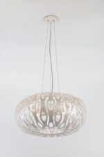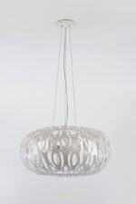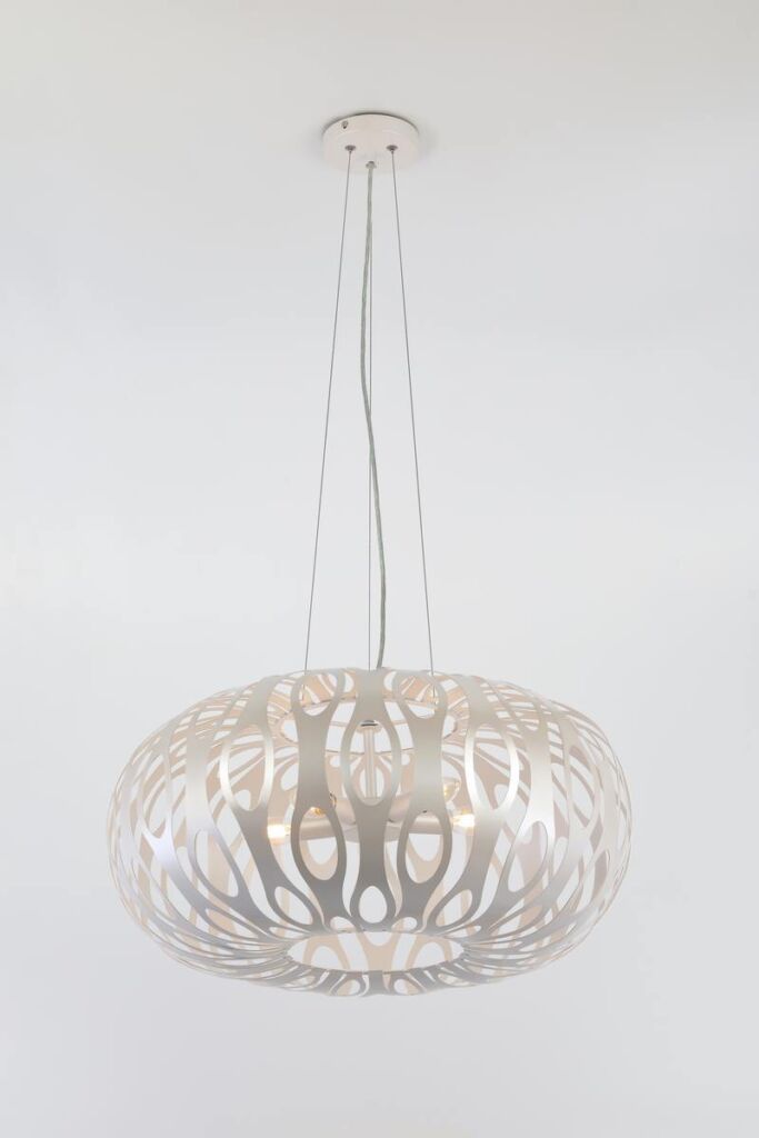 Металлические светильники с уникальной геометрией и благородным жемчужным окрашиванием. Невесомость и воздушность металла создана новой методикой высокоточной лазерной резки. Вы полюбите Rivoli Meike за необычный световой рисунок, который словно по волшебству появится на стенах, потолке, на полу. Эта серия преобразит любой интерьер! Коллекия представлена подвесной люстрой на 5 ламп.