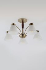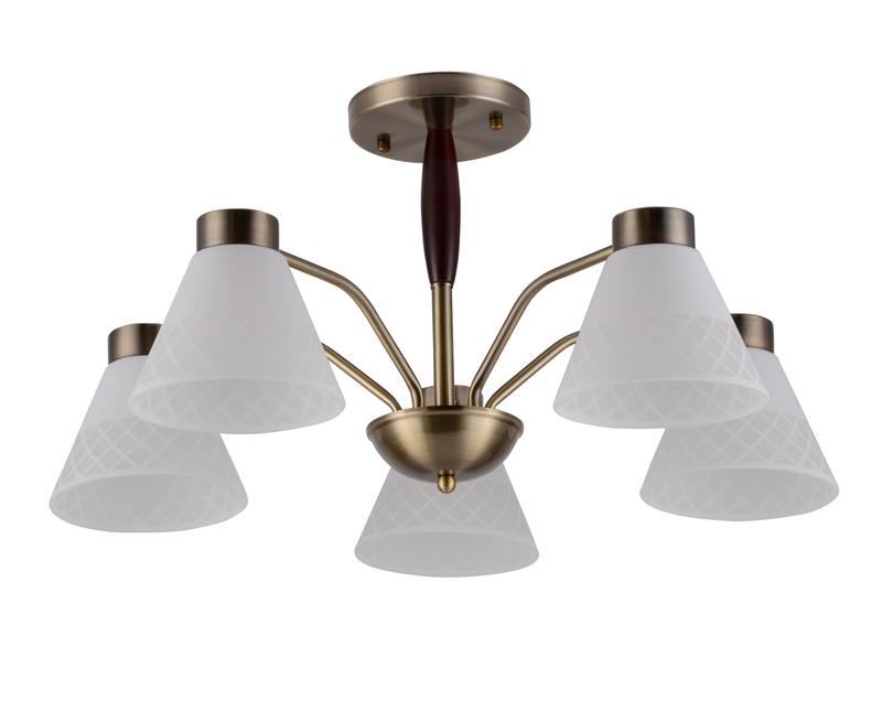 Люстры на потолок Rivoli Meta яркий пример современного подхода к классическому стилю. Арматура лаконичного исполнения окрашена в цвет античная бронза. Матовые стеклянные плафоны этой универсальной люстры украшены геометричным рисунком. У основания деревянный элемент благородного темно-коричневого оттенка.