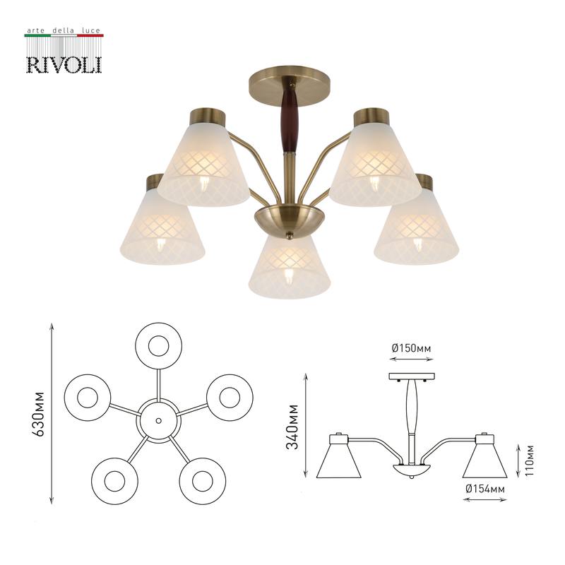 Характеристики Люстра Rivoli Meta 2058-305 5 х Е27 40 Вт классика: