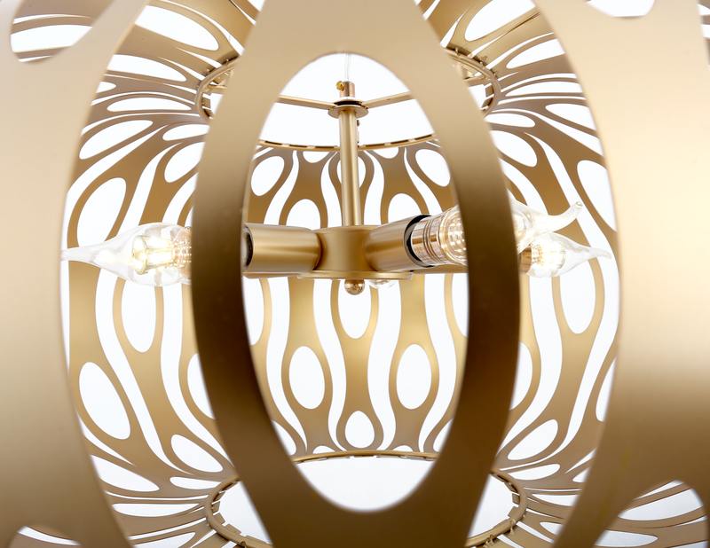 Со светильниками Rivoli Mitzi комната будет наполнена воздухом, светом и стилем. Благодаря уникальному методу высокоточной лазерной резки, создателям этой серии удалось добиться невесомости металла и особой плавности линий узора. Благородный золотой цвет абажура с перламутровым напылением это солнце, навсегда поселившееся в вашем доме! Коллекция представлена подвесной люстрой на 5 ламп.
