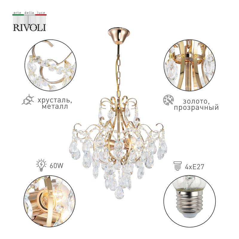 Характеристики Люстра Rivoli Thea 1031-304 4 x E27 60 Вт хрусталь классика: