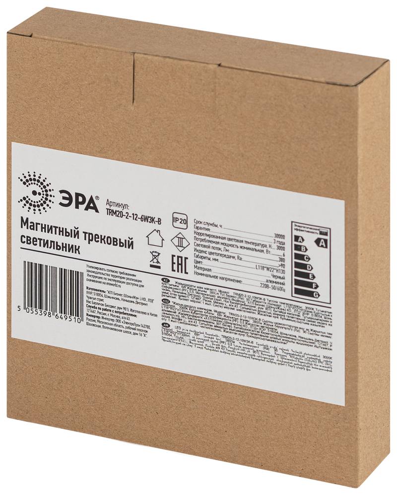 Характеристики Магнитный трековый светильник ЭРА TRM20-2-12-6W3K-B для системы NOVA 48V 6Вт 3000К заливающий свет черный: