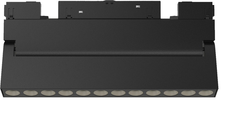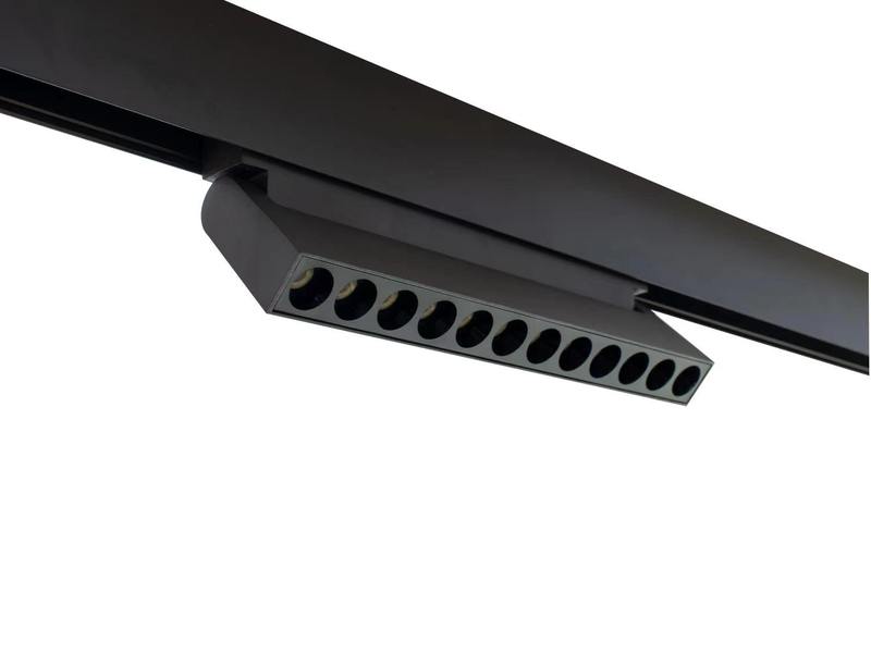 Магнитный трековый светильник TRM20-4-22-12W4K-B. Цветовая температура 4000К, индекс цветопередачи СRI>90. Мощность 12 ватт. Напряжение питания 48V. Материал корпуса алюминий. Световой прибор имеет вращающийся корпус, позволяющий регулировать направления светового потока, и угол рассеивания 30 градусов, что делает его идеальным источником света для создания акцентов в помещении и зонирования пространства.