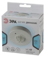 Характеристики MD 017 Датчик движения ЭРА белый, макс. нагрузка 1200Вт, угол обзора 180-360гр, дальность 12м: