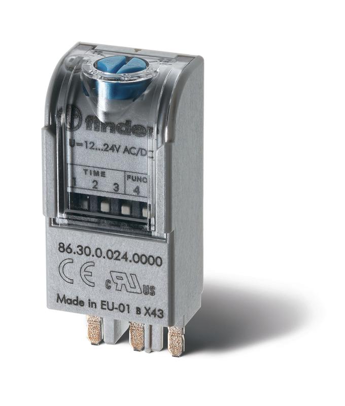 Характеристики Модуль таймерный 2х-функциональный (AIDI) для применения с реле монтаж в розетку 12…24В AC/DC регулировка времени 0.05с…100ч IP20 FINDER 863000240000:
