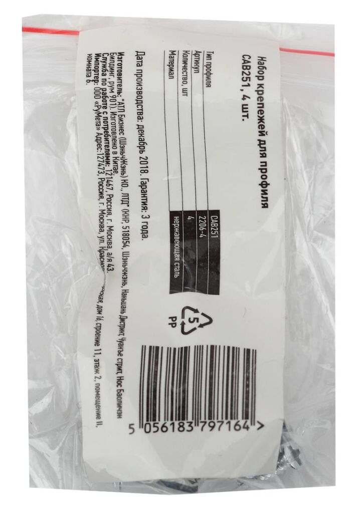 Характеристики Набор крепежей ЭРА 2206-4 для профиля CAB251 4 шт: