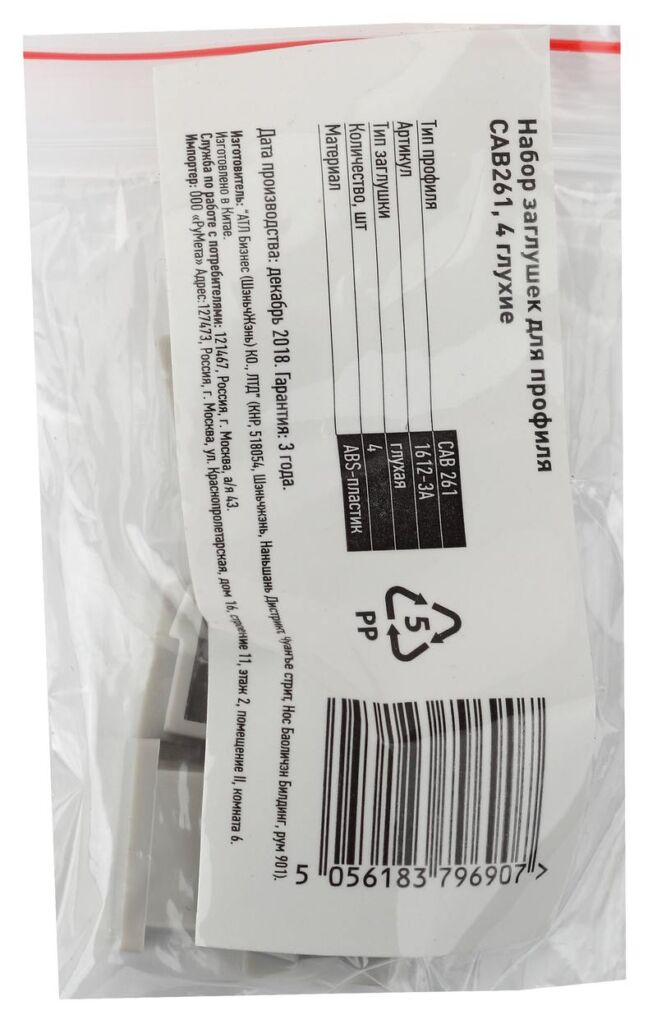 Характеристики Набор заглушек ЭРА 1612-3A для профиля CAB261 4 глухие: