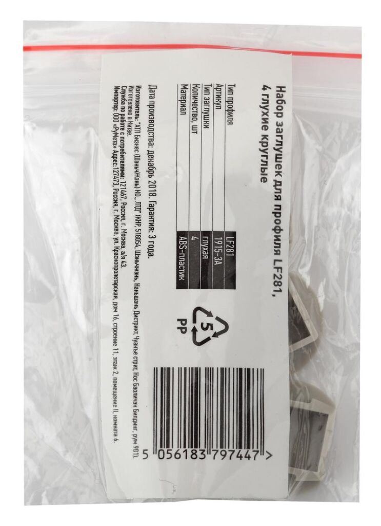 Характеристики Набор заглушек ЭРА 1915-3A для профиля LF281, 4 глухие круглые: