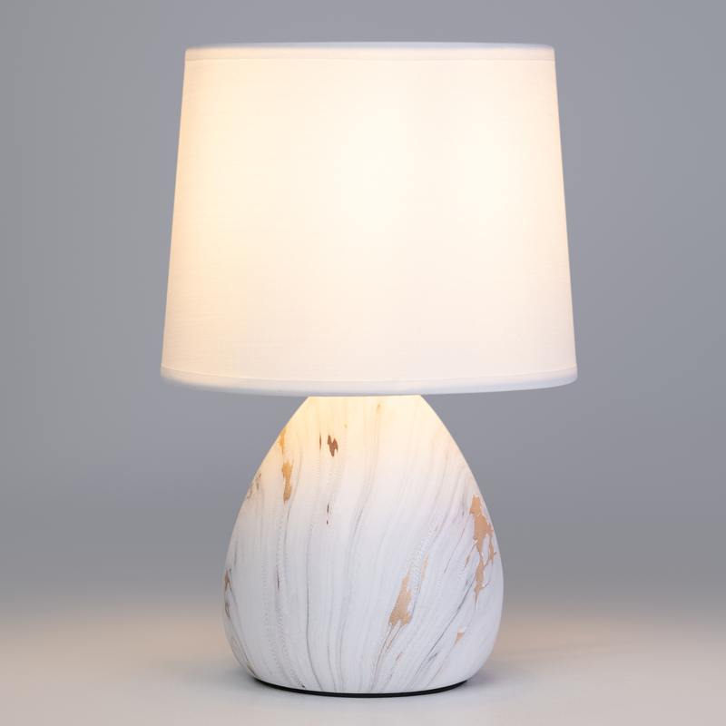Настольная лампа Rivoli Damaris (арт. D7037-501) — красивое и практичное решение для вашего дома. Лампы настольные создают в помещении уют и комфортную атмосферу для отдыха. Данная лампа настольная от европейских дизайнеров имеет классический белый абажур из качественной ткани. Основание лампы изготовлено из керамики с расцветкой под мрамор в светлых тонах с яркими золотыми прожилками.