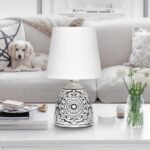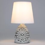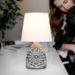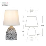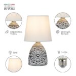 Rivoli Debora (арт. 7045-502) — интерьерный настольный светильник с белым тканевым абажуром и черным керамическим основанием с узорами. Дизайн создан в Италии в соответствии с современными тенденциями оформления интерьеров.