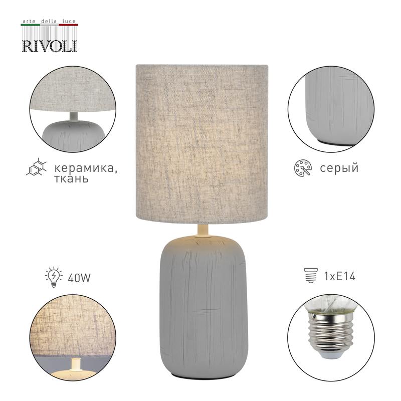 Характеристики Настольная лампа Rivoli Ramona 7041-502 1 * Е14 40 Вт керамика серая с абажуром: