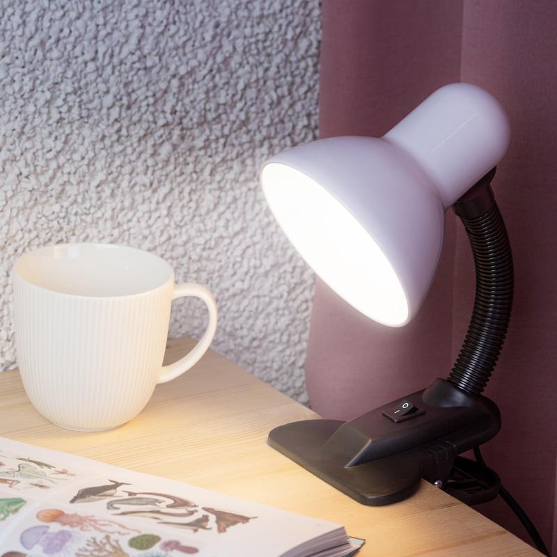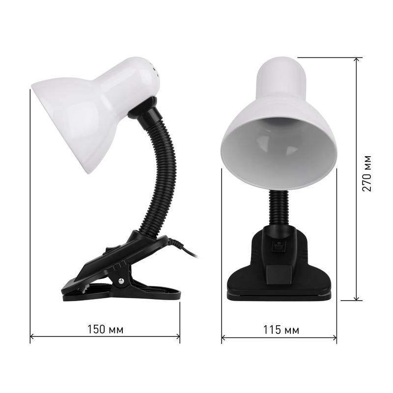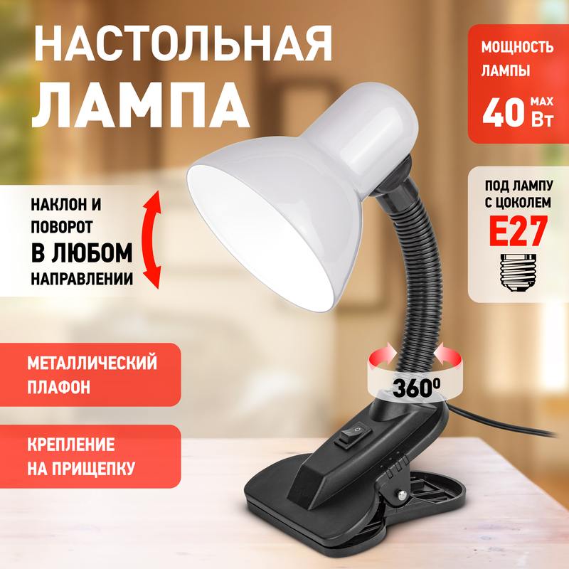 Характеристики Настольный светильник ЭРА N-102-E27-40W-W на прищепке белый: