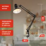 Характеристики Настольный светильник ЭРА N-121-E27-40W-BK на струбцине черный: