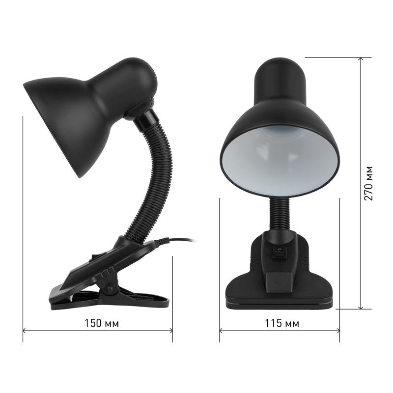 | Функциональные преимущества | Светильник может использоваться с лампой накаливания, компактной люминесцентной лампой (КЛЛ) или светодиодной (LED) лампой. Прочная прищепка. Металлический плафон. Наклон и поворот плафона в любом направлении. Светильник поставляется в "мягкой" упаковке (ПЭ пакет). |