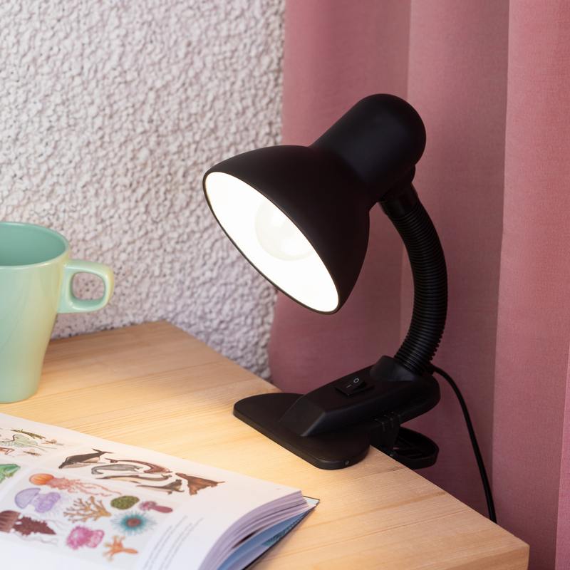 Настольный светильник-прищепка ЭРА N-212-E27-40W-BK может использоваться с лампой накаливания, компактной люминесцентной лампой (КЛЛ) или светодиодной (LED) лампой. У светильника прочная удобная прищепка и металлический плафон. Наклон и поворот плафона в любом направлении для удобного направления света. Поставляется в "мягкой упаковке" — индивидуальном ПЭ пакете.