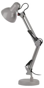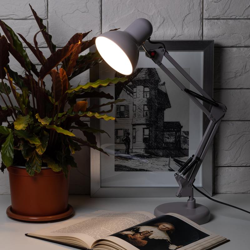 Настольный светильник ЭРА N-214-E27-40W-GY классического дизайна может использоваться с разными источниками света — лампой накаливания, компактной люминесцентной лампой (КЛЛ) или светодиодной (LED) лампой. Выключатель на проводе. Устойчивое основание. Высота плафона регулируется двухсекционной сгибающейся стойкой, направление света — поворотом и наклоном плафона в любом направлении.