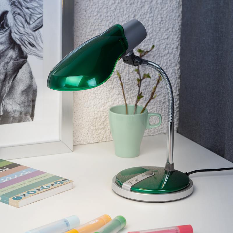 Настольный светильник ЭРА NE-301-E27-15W-GR может использоваться с компактной люминесцентной лампой (КЛЛ) или светодиодной (LED) лампой (лампу накаливания в светильнике использовать нельзя). Устойчивое металлическое основание, выключатель на основании. Направление света регулируется несколькими способами для максимального комфорта. У модели современный дизайн и яркие цвета. Привлекательный эффект полупрозрачности поверхностей плафона и основания украшают интерьер и радуют глаз. Выбирайте подходящий именно вашему дому или комнате цвет, или же создайте на столе или прикроватной тумбочке яркий позитивный акцент.