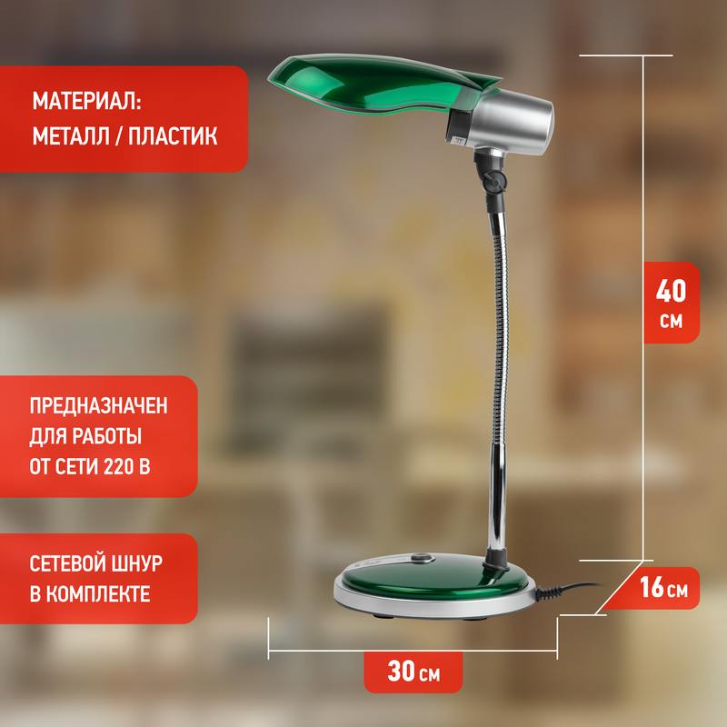 Характеристики Настольный светильник ЭРА NE-301-E27-15W-GR зеленый:
