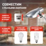 | Функциональные преимущества | Светильник может быть использован с компактной люминесцентной лампой (КЛЛ), и светодиодной (LED) лампой диаметром до 42 мм. Устойчивое металлическое основание. Направление света регулируется несколькими способами для максимального комфорта. |