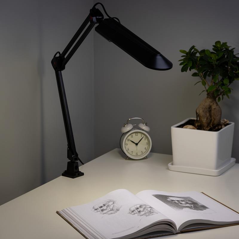 | Функциональные преимущества | Светильник предназначен для использования с энергосберегающей лампой, лампа входит к комплект. Удобное крепление на струбцину к любой плоской поверхности. Высота плафона регулируется двухсекционной сгибающейся стойкой. |