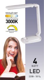 Характеристики Настольный светильник ЭРА NLED-425-4W-W светодиодный аккумуляторный белый: