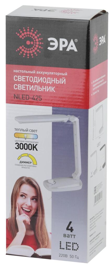 Характеристики Настольный светильник ЭРА NLED-425-4W-W светодиодный аккумуляторный белый: