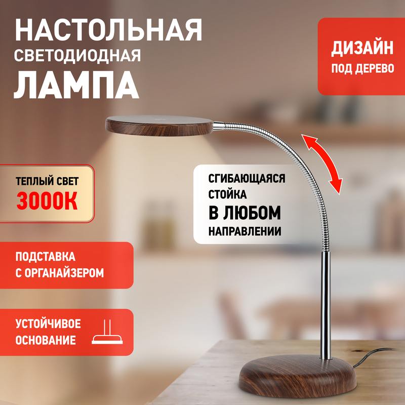 Характеристики Настольный светильник ЭРА NLED-436-8W-WOOD светодиодный дерево: