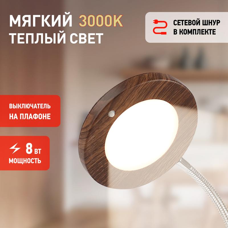 Настольный светильник ЭРА NLED-436-8W-WOOD со светодиодами (LED) в качестве источников света с поверхностью цвета дерева. Направление света регулируется поворотом плафона в любом направлении под любым углом. Светильник создаст привлекательный акцент в любом интерьере, особенно в теплых тонах или где есть деревянные предметы мебели.