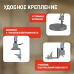 | Функциональные преимущества | Светильник со светодиодами (LED) в качестве источников света. Два варианта крепления в комплекте: основание, струбцина. Высота плафона регулируется двухсекционной сгибающейся стойкой, направление света регулируется поворотом плафона в любом направлени. |