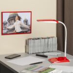 Настольный светильник ЭРА NLED-447-9W-R со светодиодами (LED) в качестве источников света. Светильник оснащен сенсорным управлением с возможностью регулировки яркости освещения, 4 уровня. Гибкая стойка позволяет настраивать комфортную высоту плафона и направлять свет под любым углом. Современный дизайн в стиле хай-тек.