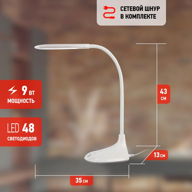 Характеристики Настольный светильник ЭРА NLED-452-9W-W светодиодный белый: