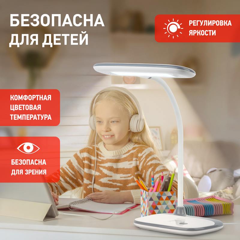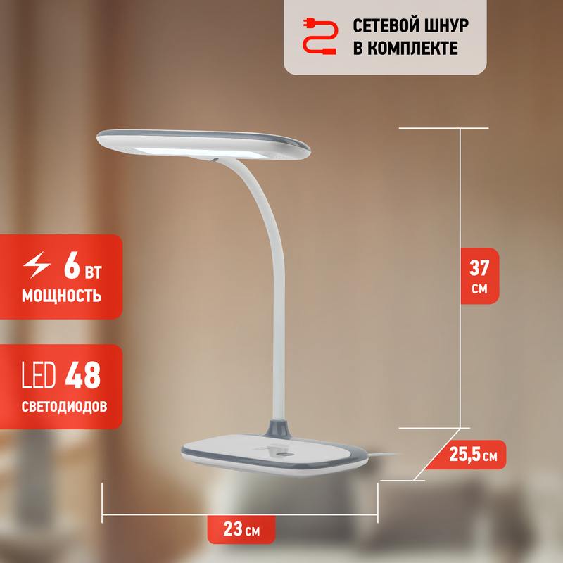 Характеристики Настольный светильник ЭРА NLED-458-6W-W светодиодный белый: