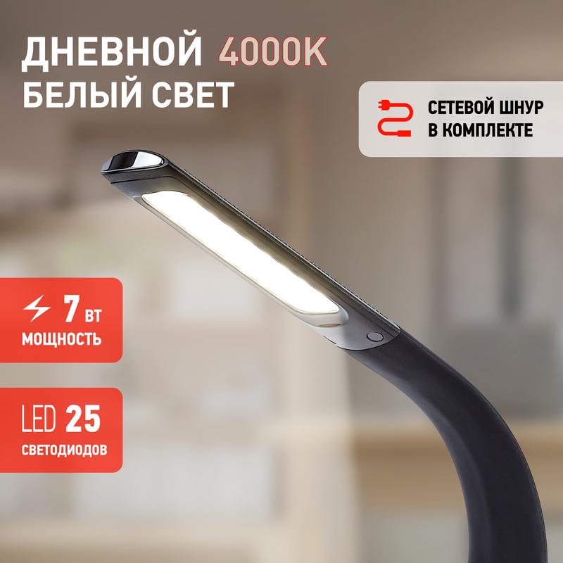 Характеристики Настольный светильник ЭРА NLED-461-7W-BK светодиодный черный: