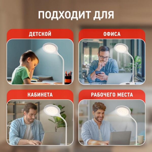 Характеристики Настольный светильник ЭРА NLED-498-10W-W светодиодный со съемным основанием белый: