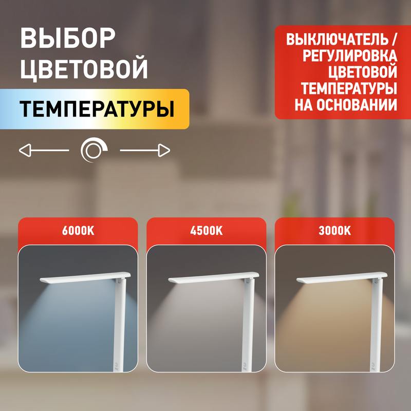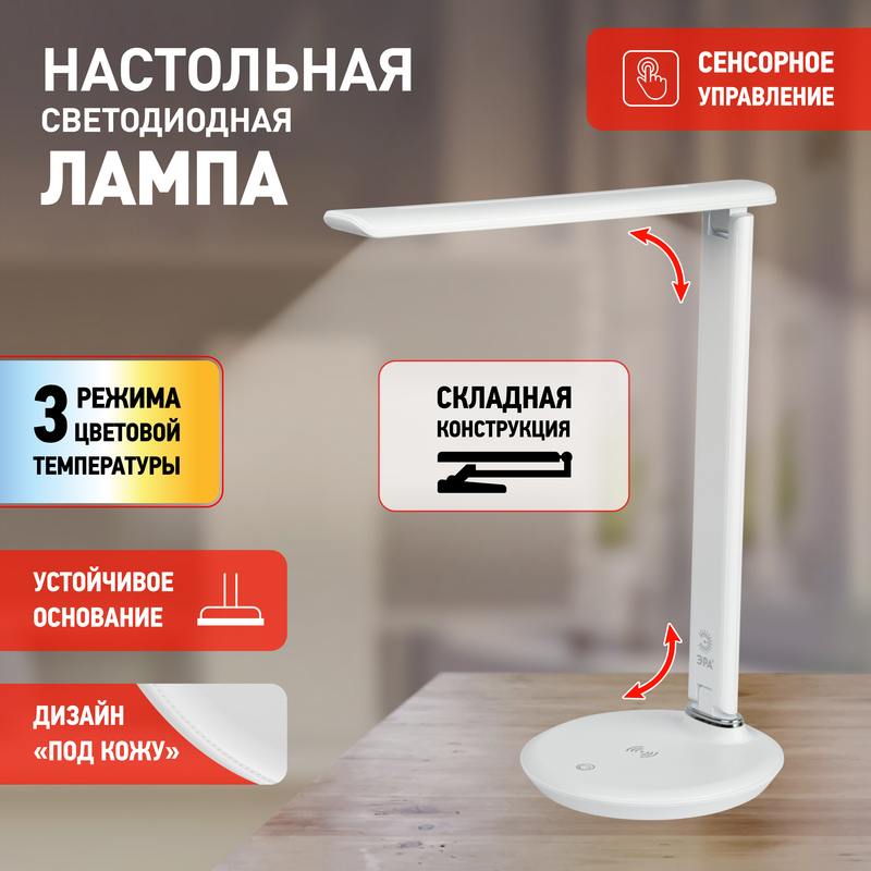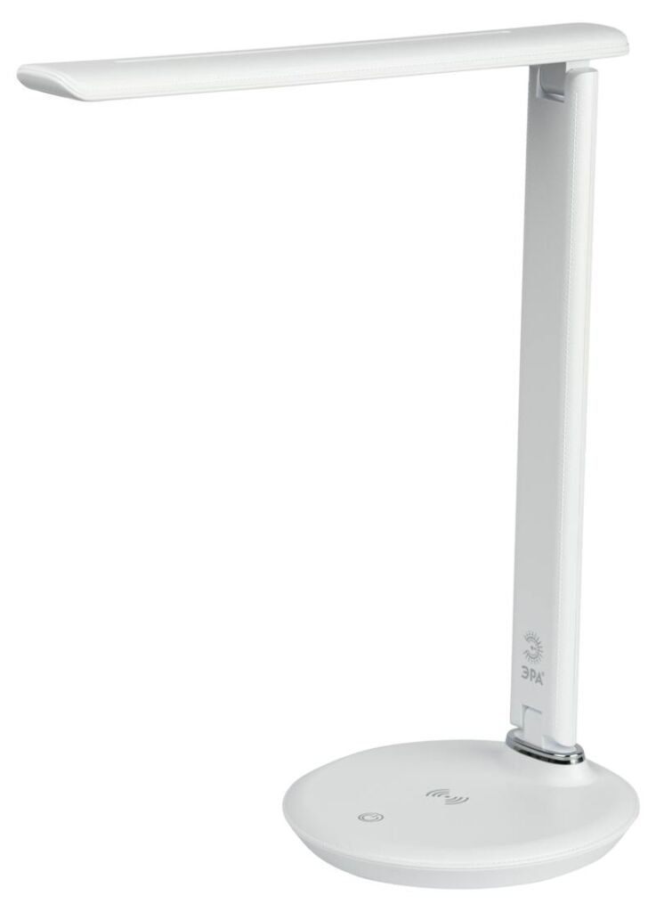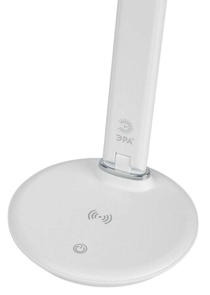 Настольный светильник ЭРА NLED-504-10W-W со светодиодами (LED) в качестве источников света в дзайне "под кожу". Удобная складная конструкция с сенсорным управлением, возможностью выбора цветовой температуры и плавным диммером для регулировки яркости. Светильник имеет встроенный модуль Qi для беспроводной зарядки мобильных устройств. Просто положите телефон, поддерживающий функцию Qi на основание светильника в отмеченной зоне — светильник подзарядит его.