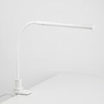 Настольный светильник со светодиодами (LED) в качестве источников света, 8 Вт. Модель на струбцине с сенсорным переключателем на плафоне. Плавная регулировки яркости. Высота плафона регулируется гибкой стойкой. Нейтральный белый свет — цветовая температура 4000К.