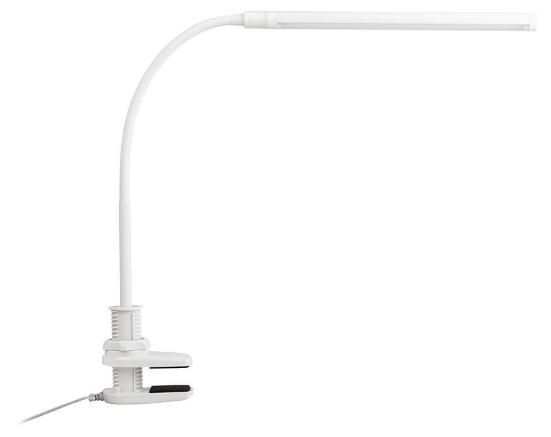 | Функциональные преимущества | Настольный светильник со светодиодами (LED) в качестве источников света, 8 Вт., на струбцине, с сенсорным переключателем на плафоне. Плавная регулировки яркости. Гибкая стойка. Нейтральный белый свет — цветовая температура 4000К. |