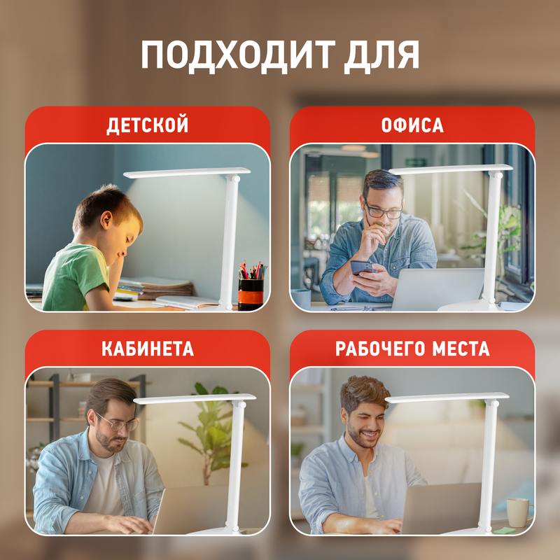 Настольный светильник ЭРА NLED-510-8W-W со светодиодами (LED) в качестве источников света. Встроенный литиевый аккумулятор для автономной работы. Подзарядка от USB. USB-кабель в комплекте. Оснащен сенсорным управлением с возможностью выбора цветовой температуры (теплый, нейтральный или холодный свет). Плавный диммер для регулировки яркости. Складная конструкция для оптимального хранения.
