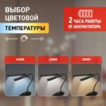 Характеристики Настольный светильник ЭРА NLED-512-6W-BK светодиодный аккумуляторный на прищепке черный: