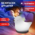 Милый ночник для детей ЭРА NLED-412-1W-W в виде аккуратной фигурки Птички. Такая вещь легко впишется в интерьер за счет универсального дизайна, сделает атмосферу в доме более уютной, а также успокоит ребенка перед сном. У силиконового светодиодного ночника-светильника 2 режима: постоянный свет и медленное переключение RGB-цветов. Один для спокойной ночи, другой создаст хорошее настроение. Свет регулируется касанием — а делать это приятно за счет мягкого материала. Ваш непоседа может гладить игрушку при включении: она поможет снять стресс после утомительного дня. Светодиодный ночник работает от батареек (не входят в комплект), потому его легко поставить как в спальню на тумбочку, так и унести в детскую комнату. В комплект также входит USB-шнур: подключите Птичку к сети, если сядут батарейки (не входят в комплект) или если розетка Вам удобнее, и просто переключите Птичку выключателем в режим USB. Этот подарок порадует и взрослого, и маленького непоседу! Отмечайте Новый год с новым другом!