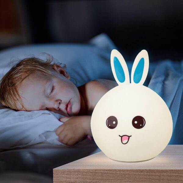Силиконовая игрушка-ночник ЭРА NLED-416-2W-BU в виде зайчика с восхитительной улыбкой. Этот светодиодный светильник настольный легко впишется в декор спальни, поможет малышу быстро заснуть и сделает уютным интерьер. У светильника-ночника несколько режимов: белый, красный, зеленый или синий цвет свечения на выбор, а также завораживающая смена ярких цветов. Выбирать тип света можно через касание — а делать это вдвойне удобно за счет нежного силикона. Ребенок может мягко сжимать игрушку при переключении цветов: она поможет снять стресс после изнурительного дня. Аккумуляторная лампа-ночник не зависит от проводов: подзарядите его, а потом возьмите с собой в детскую комнату или поставьте в спальню на тумбочку. Выбрав светящегося зайчика от торговой марки ЭРА, вы получите идеальный презент и для себя, и для своего непоседы. Найдите место для верного друга у себя дома!