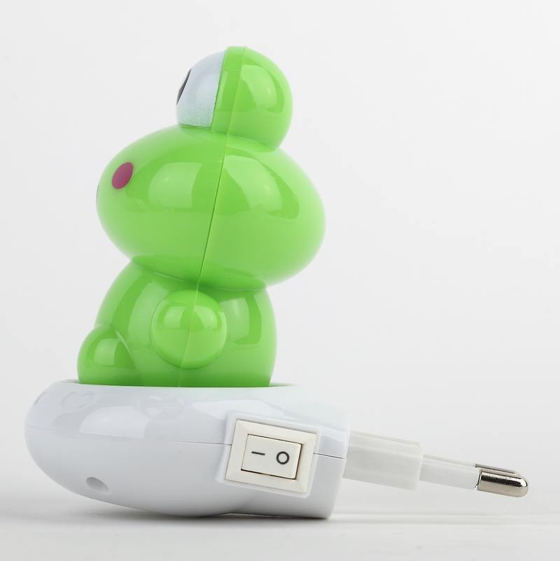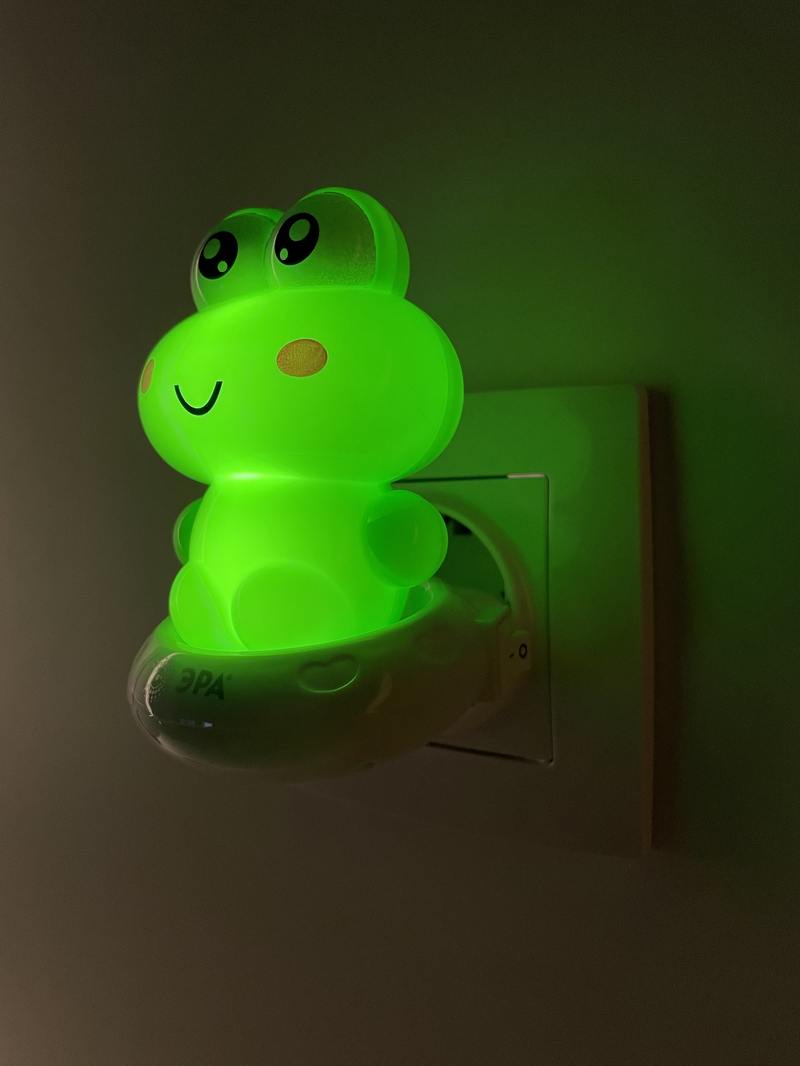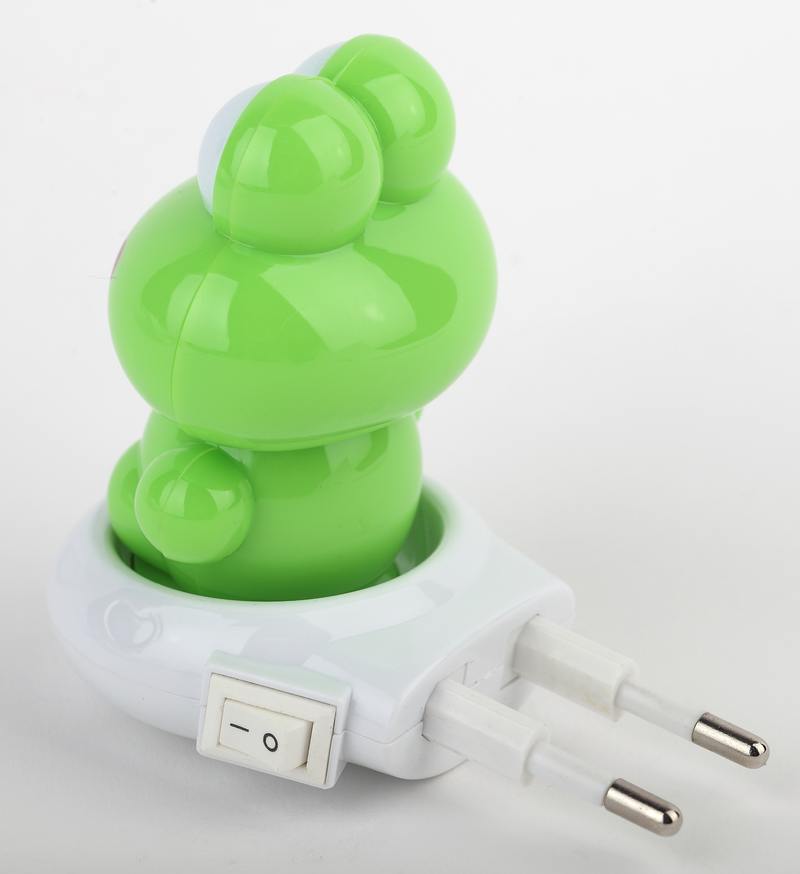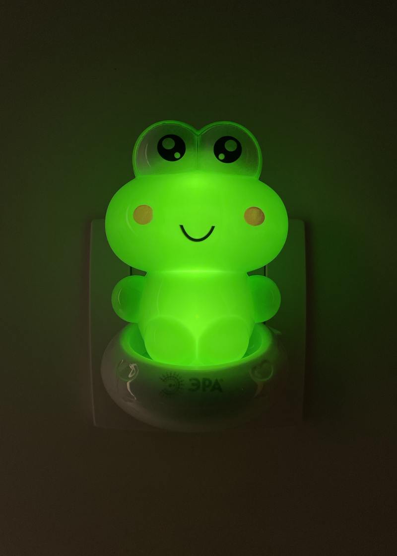 Ночник NN-608-SW-GR "Лягушонок" со светодиодами (LED) в качестве источников света. С выключателем. Среди множества вариантов ночников миниатюрные модели, вставляющиеся в розетку — одни из самых удобных. Светодиодные ночники ЭРА успешно выполняют свою основную функцию — создают мягкий рассеянный свет. Они отличаются мизерным энергопотреблением, которое будет незаметно в общем счете за электроэнергию. При необходимости можно смело оставлять их включенными ночи напролет. Современная LED технология исключает пульсации света, освещение ровное и приглушенное — то, что нужно для комфортного сна или ночной подсветки. Ночник светодиодный ЭРА в виде лягушонка — идеальный подарок ребенку.