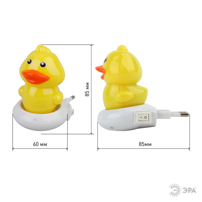 Ночник NN-609-SW-Y в виде милой желтой уточки со светодиодами (LED) в качестве источников света. С выключателем. Среди множества вариантов ночников миниатюрные модели, вставляющиеся в розетку — одни из самых удобных. Светодиодные ночники ЭРА успешно выполняют свою основную функцию — создают мягкий рассеянный свет. Они отличаются мизерным энергопотреблением, которое будет незаметно в общем счете за электроэнергию. При необходимости можно смело оставлять их включенными ночи напролет. Современная LED технология исключает пульсации света, освещение ровное и приглушенное — то, что нужно для комфортного сна или ночной подсветки. Яркий трогательный ночник светодиодный ЭРА "Утенок" — идеальный подарок ребенку и практичное украшение детской комнаты.