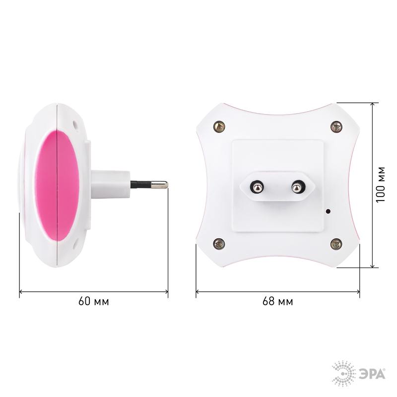 Характеристики Ночник — светильник светодиодный ЭРА NN-612-LS-PL ФИКСИКИ в розетку с датчиком освещенности бордовый: