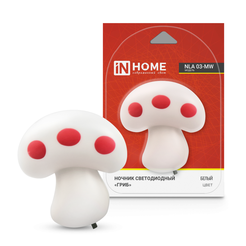 Характеристики Ночник светодиодный NLA 03-MW ГРИБ белый с выключателем 230В IN HOME: