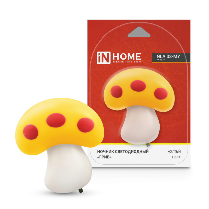 Характеристики Ночник светодиодный NLA 03-MY ГРИБ жёлтый с выключателем 230В IN HOME: