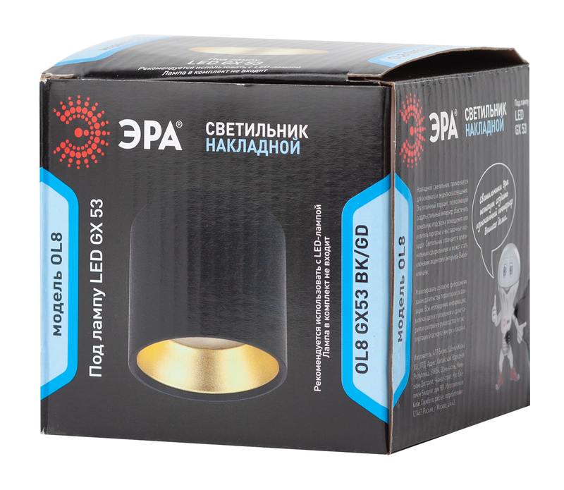 Характеристики OL8 GX53 BK/GD Подсветка ЭРА Накладной под лампу Gx53, алюминий, цвет черный+золото: