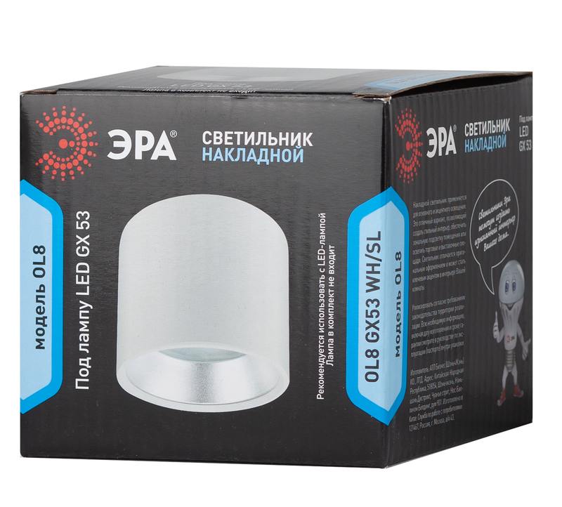 Характеристики OL8 GX53 WH/SL Подсветка ЭРА Накладной под лампу Gx53, алюминий, цвет белый+серебро: