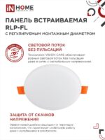 Характеристики Панель светодиодная встраиваемая безрамочная RLP-FL 10Вт 230В 6500К 900Лм 100мм с регулируемым монтажом 45-80мм белая IP20 IN HOME: